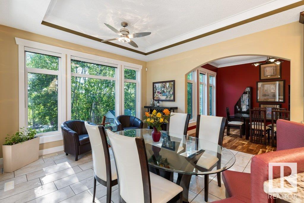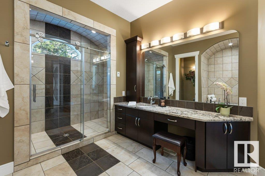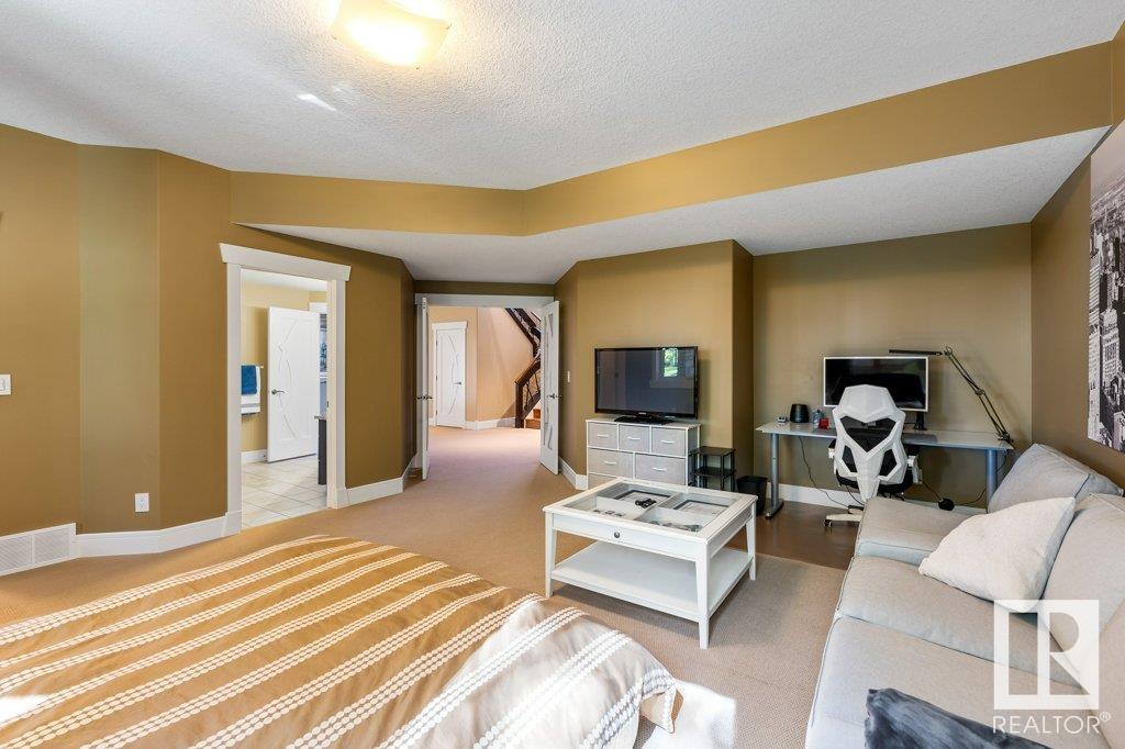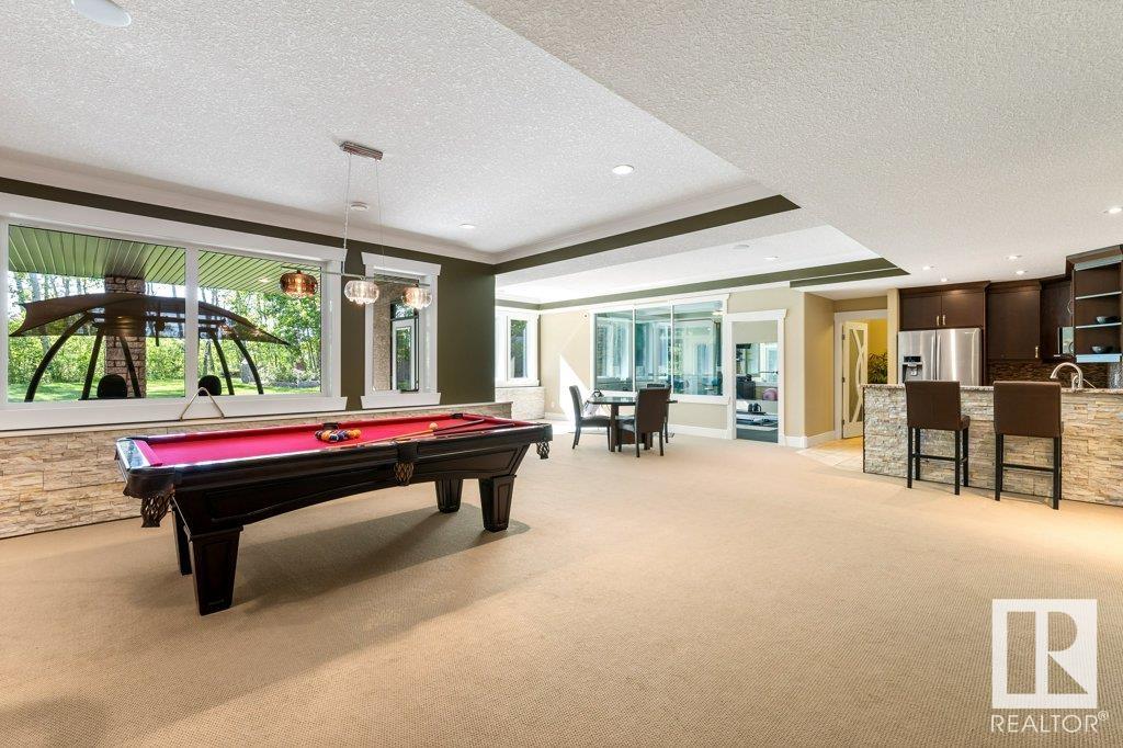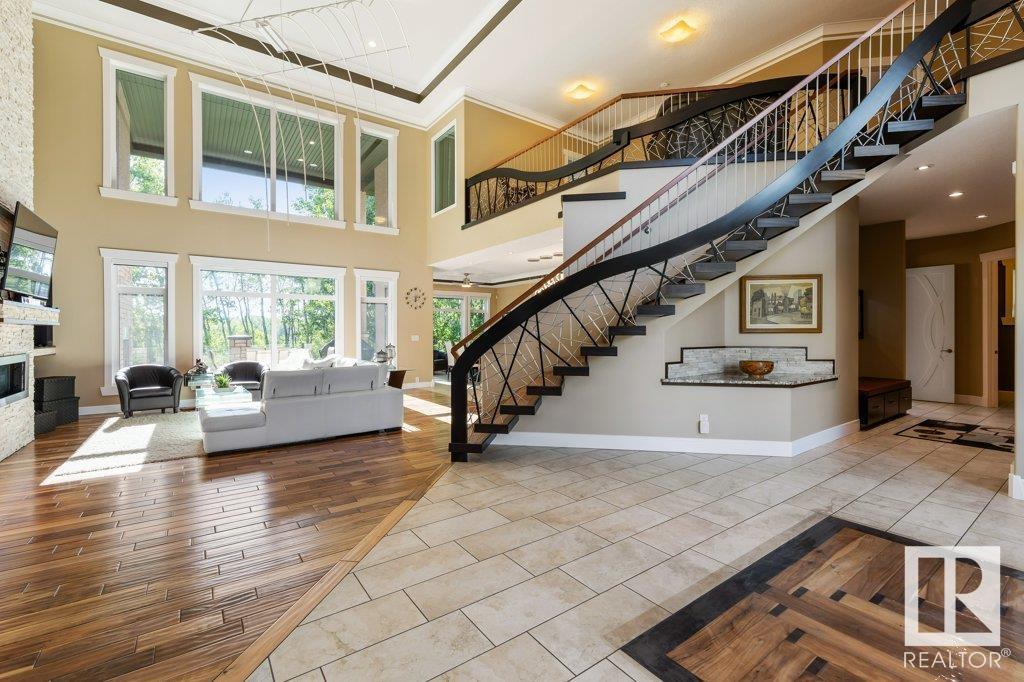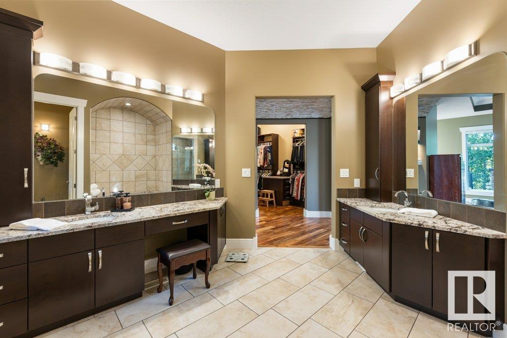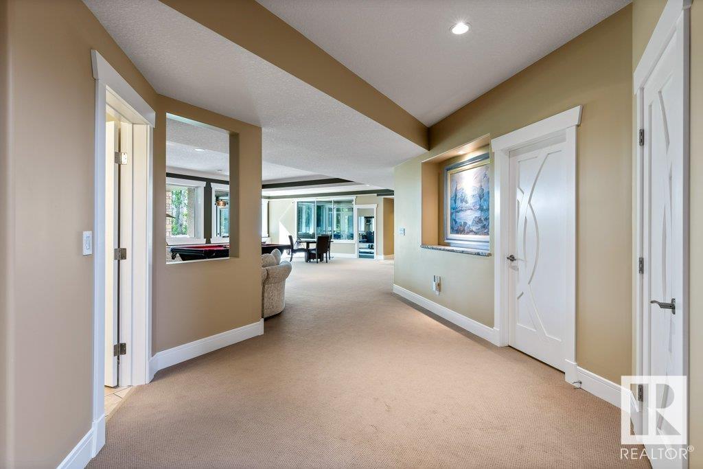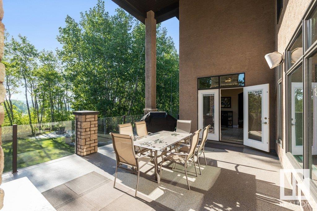 PRIVACY, SERENITY & STUNNING CURB APPEAL in THE CROSSINGS AT RIVERS EDGE. Designed to embrace it’s RAVINE & PARK RESERVE surroundings, this gorgeous 4300 sqft walkout bungalow with 5 car garage features over 7100 sqft of detailed living space. Upon entering your greeted with soaring ceilings, designer wrought iron staircase leading to the1244 sqft 2-bedroom loft with sitting area, exotic hardwoods & banks of windows letting nature in. Features of this great room bungalow include: custom millwork throughout, sun drenched rooms, CHEF’S GRANITE KITCHEN with huge breakfast bar island & walk through pantry, gorgeous cabinetry, large eating nook leading to your covered deck with feature fireplace, travertine backsplash , floor to ceiling cut quartz fireplace, RESORT STYLE PRIMARY bedroom with seven piece spa inspired ensuite, formal dining, main floor office, theatre room, workout room, five bedrooms, wine room, recreation room with cut quartz accents, wet bar, radiant heating, awesome garage, ravine firepit