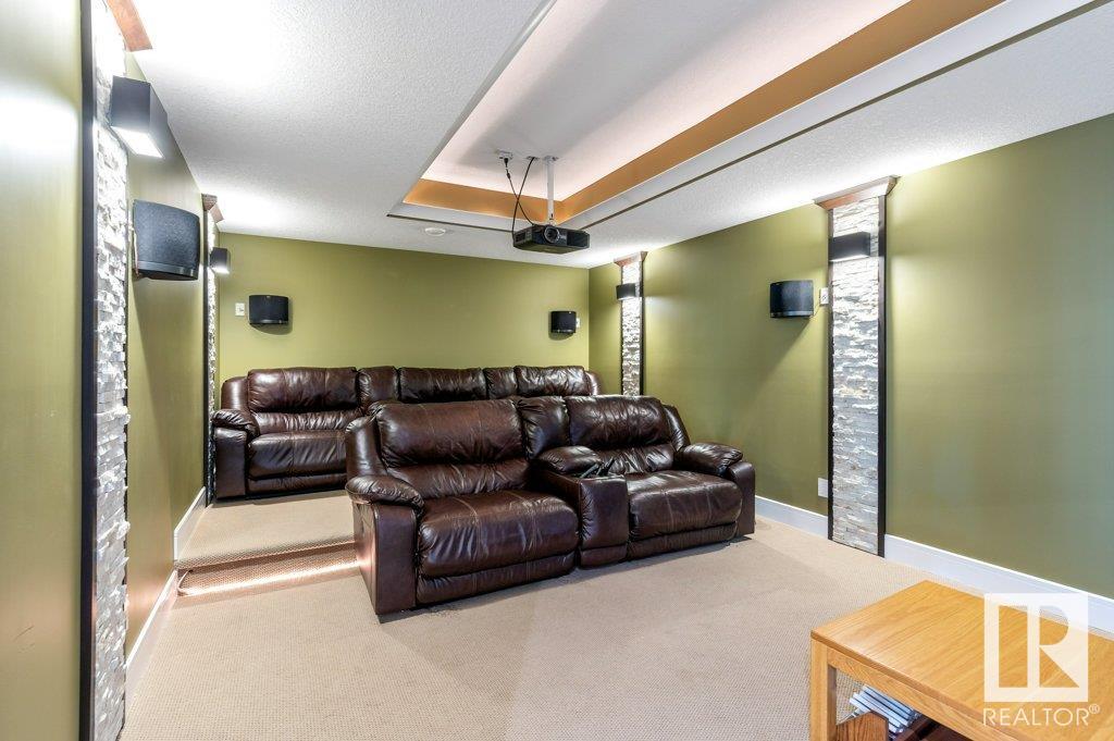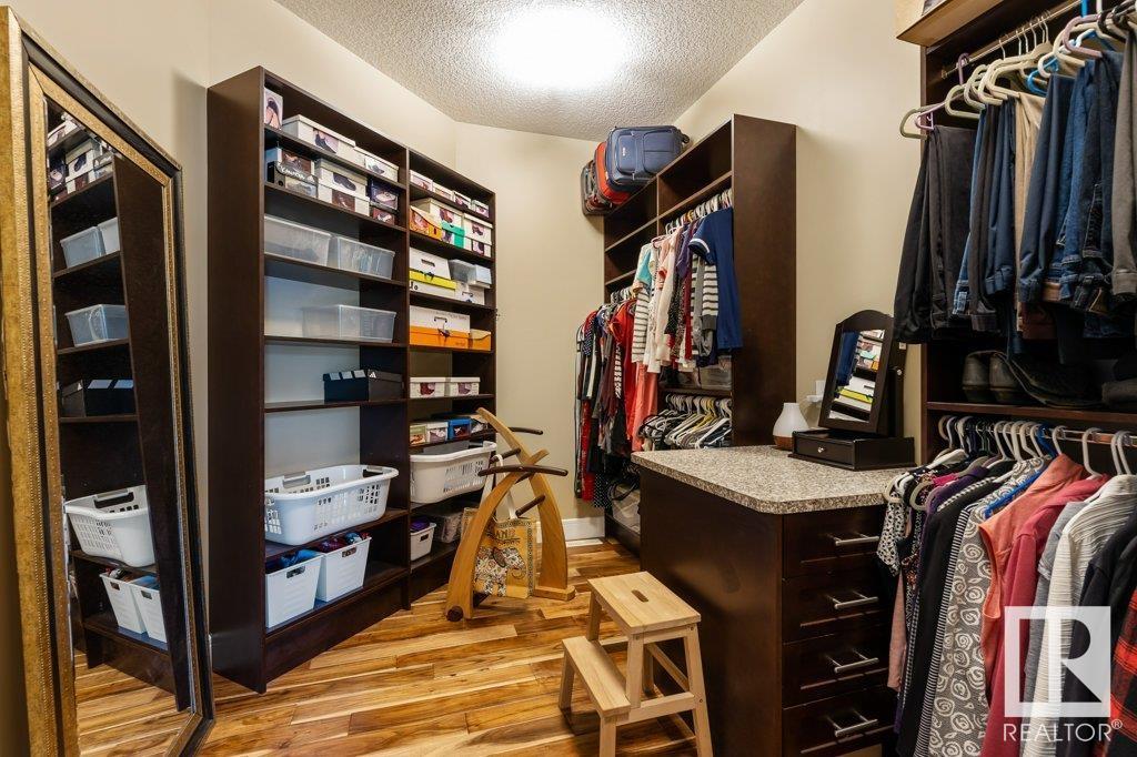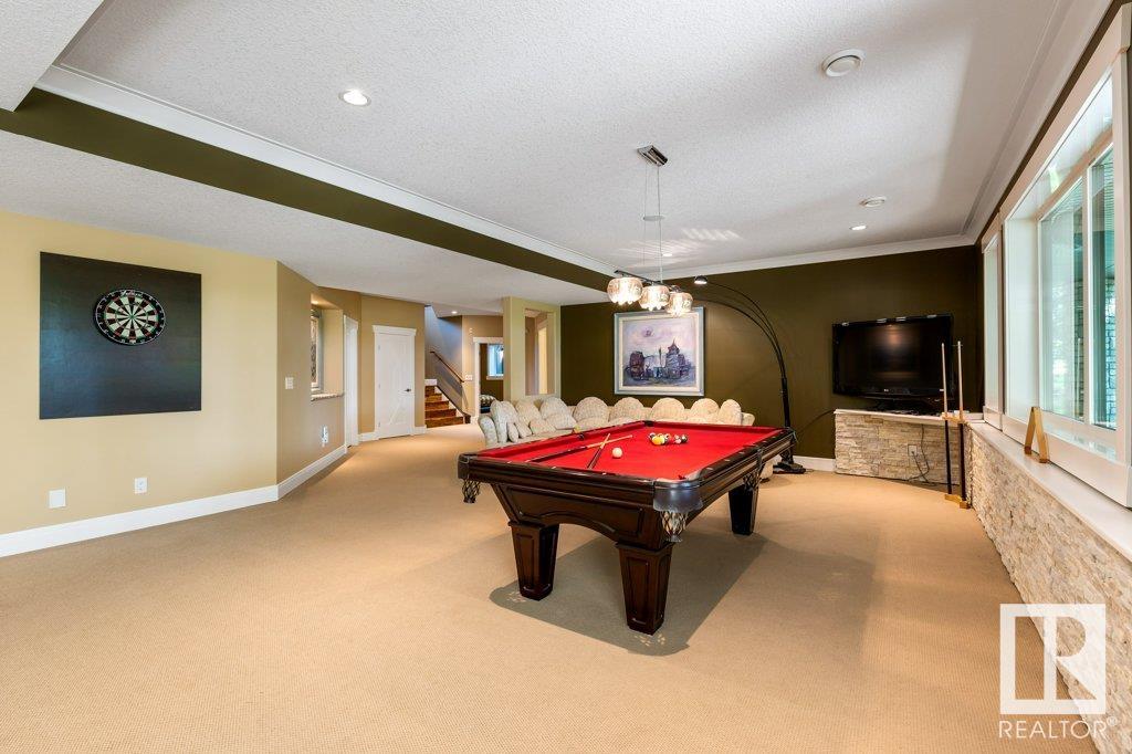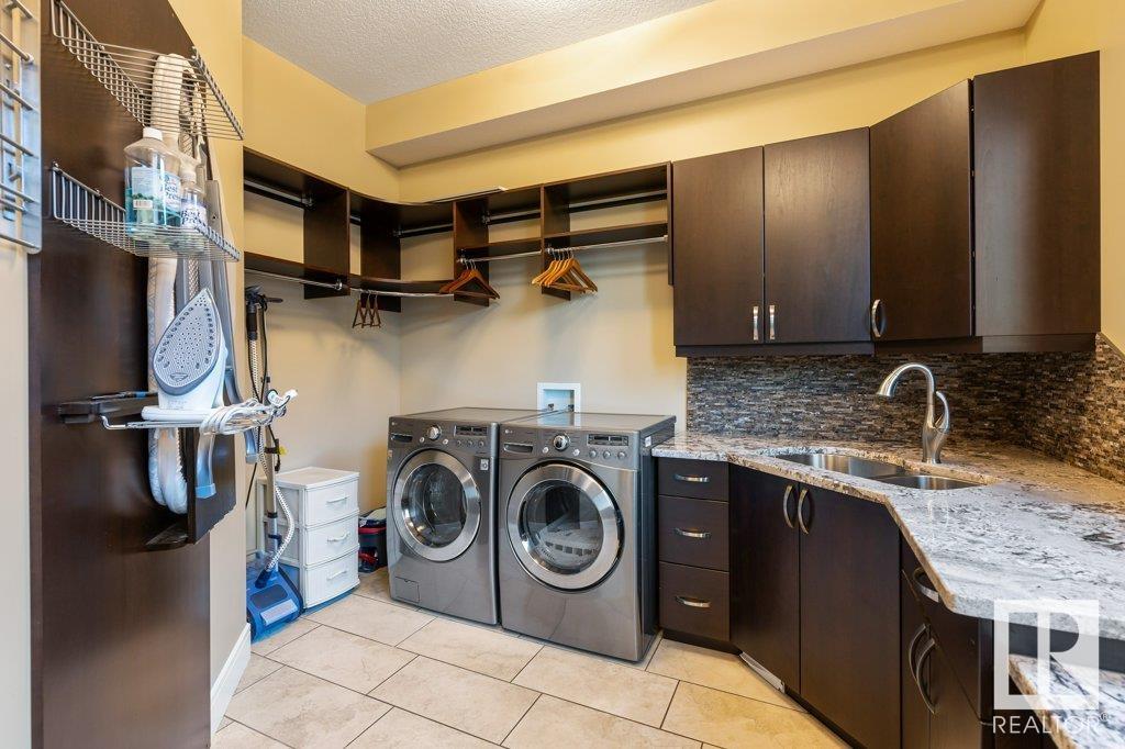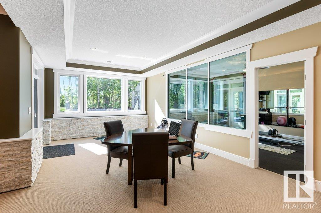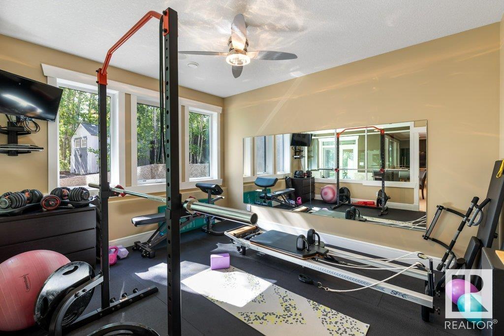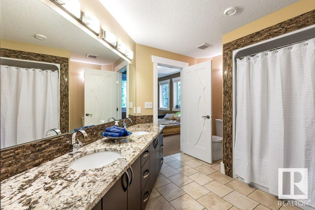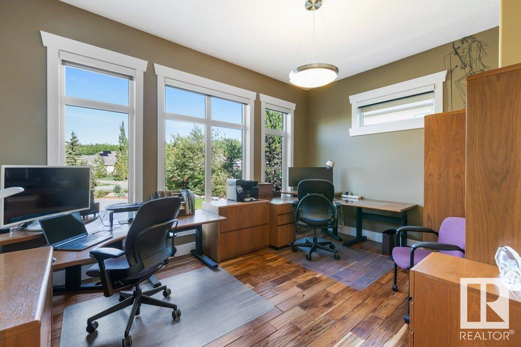PRIVACY, SERENITY & STUNNING CURB APPEAL in THE CROSSINGS AT RIVERS EDGE. Designed to embrace it’s RAVINE & PARK RESERVE surroundings, this gorgeous 4300 sqft walkout bungalow with 5 car garage features over 7100 sqft of detailed living space. Upon entering your greeted with soaring ceilings, designer wrought iron staircase leading to the1244 sqft 2-bedroom loft with sitting area, exotic hardwoods & banks of windows letting nature in. Features of this great room bungalow include: custom millwork throughout, sun drenched rooms, CHEF’S GRANITE KITCHEN with huge breakfast bar island & walk through pantry, gorgeous cabinetry, large eating nook leading to your covered deck with feature fireplace, travertine backsplash , floor to ceiling cut quartz fireplace, RESORT STYLE PRIMARY bedroom with seven piece spa inspired ensuite, formal dining, main floor office, theatre room, workout room, five bedrooms, wine room, recreation room with cut quartz accents, wet bar, radiant heating, awesome garage, ravine firepit