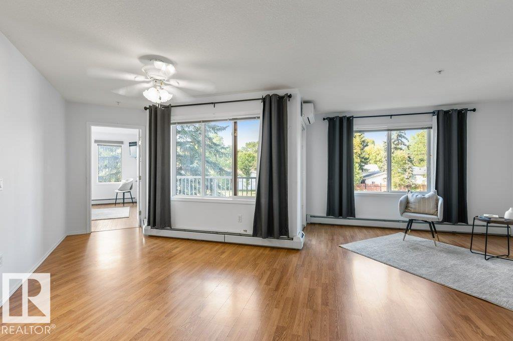 This bright and spacious 1-bedroom + den condo with UNDERGROUND STALL with storage offers comfort, convenience & welcoming lifestyle. Soaring ceilings, laminate flooring, air conditioning & large windows fill the space with natural light. The open kitchen features classic oak cabinetry & plenty of storage, overlooking the living & dining areas that lead to a large balcony with a private, tree-lined view. The generous primary bedroom connects to a 2-pce ensuite with easy access, while the versatile den can serve as an office, guest room, TV space. In-suite laundry & storage add everyday practicality. This well-cared-for complex is more than just a building—it’s a community. Residents enjoy amenities like a social room, theatre, woodworking & craft shops, exercise room, coffee bar, hair salon, guest suites & even an on-site commercial kitchen for meal service. A dedicated manager & active social committee plan events, outings & activities to keep life engaging. Condo fees include all utilities.