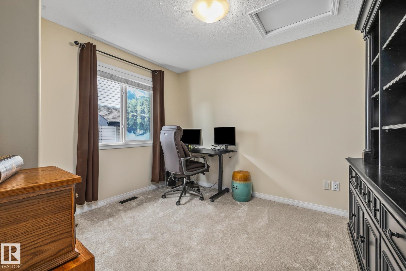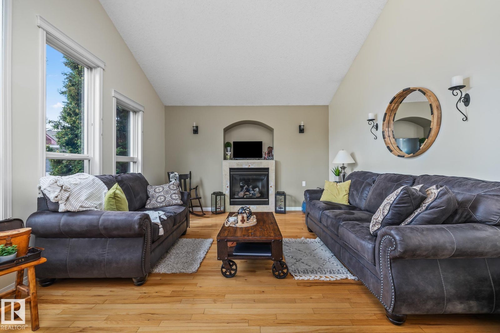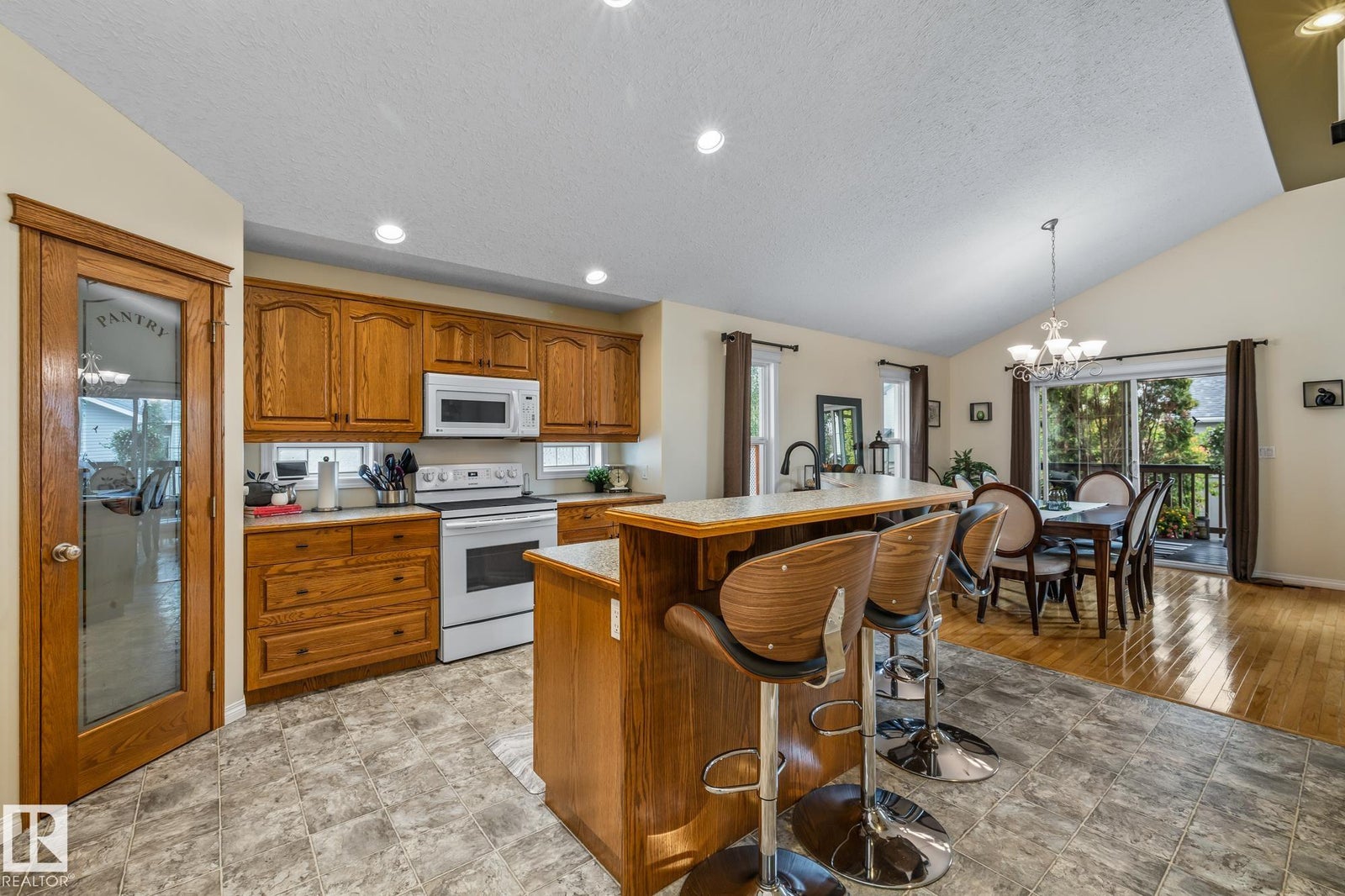 Welcome to this freshly painted, fully finished bilevel with 5 bedrooms & 3 baths—designed for everyday family living. With a brand new roof, furnace, carpet & hot water on demand, this home offers comfort & peace of mind. The open concept kitchen with corner pantry & raised eating bar flows into a dining space that opens to the deck—perfect for family meals or gatherings. The cozy living room features vaulted ceilings, hardwood floors, gas fireplace & plenty of sunlight. Upstairs, the primary retreat includes a walk-in closet & 4-pc ensuite. The landscaped backyard is made for daily enjoyment with a covered deck, stone patio, fruit tree & gas hook-up for year-round BBQs. Just a stone’s throw from the pond, you’ll love evening walks & morning coffee by the water. The fully finished basement adds 2 bedrooms, family room & 4-pc bath. An oversized insulated garage with hot/cold taps, floor drain & tons of storage completes the package. Close to schools & all amenities.