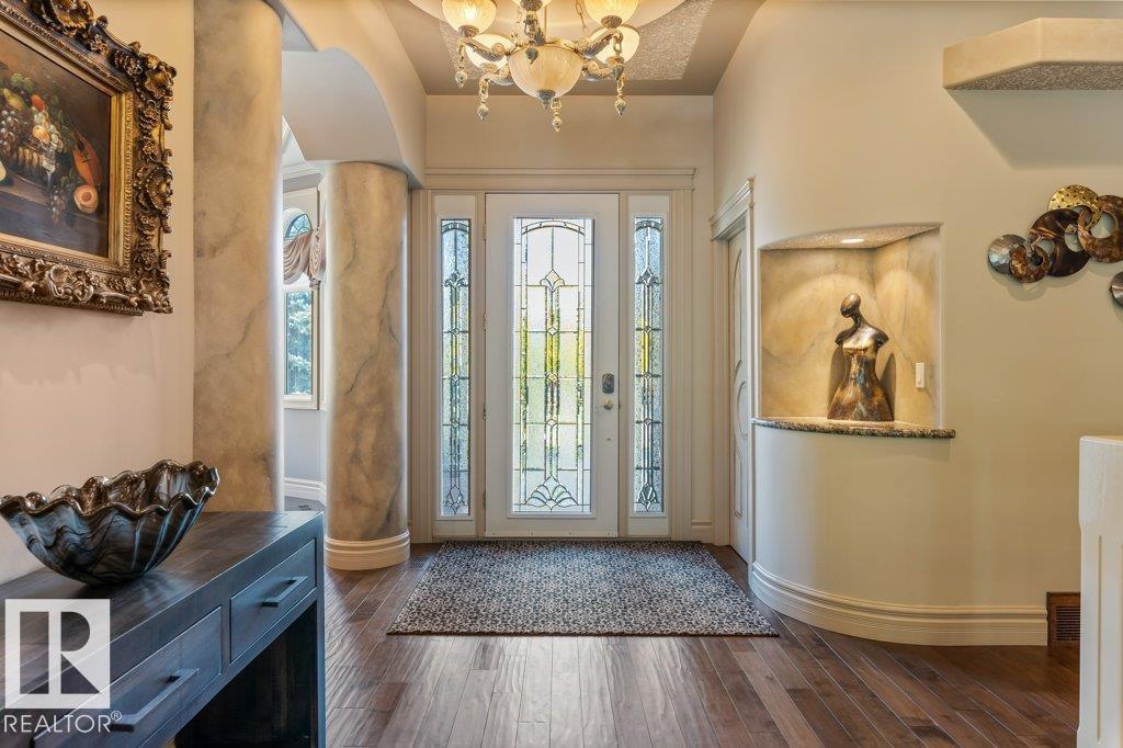 Located KINGSFORD CRESCENT ON A QUIET CUL-DE -SAC this custom built 4-bedroom 2000sqft great room bungalow with OVERSIZED TRIPLE CAR garage features over 3700SQFT OF AWESOME LIVING SPACE. From is stamped concrete driveway to its stunning stone exterior this home is impressive. Upon entering you are greeted by stunning custom millwork, hand scraped hardwood flooring, a main floor office/dining room and an expansive view of the great room with huge family room & feature wall fireplace, STUNNING GRANITE KITCHEN WITH ANTIQUED CABINETS, breakfast bar island, gas stove, built in ovens, pantry, S/S appliances, beverage fridge, loads of counterspace & a sundrenched dining nook. Additional features include: huge master bedroom with 6 pc ensuite, 2 person jacuzzi tub, glass block shower & walk in closet, HUGE RECREATION ROOM with feature wall fireplace, 3 additional large bedrooms, built in entertainment center, wet bar, games area, large laundry room, 9 foot ceilings, private patio all steps from RIVER LOT 56.