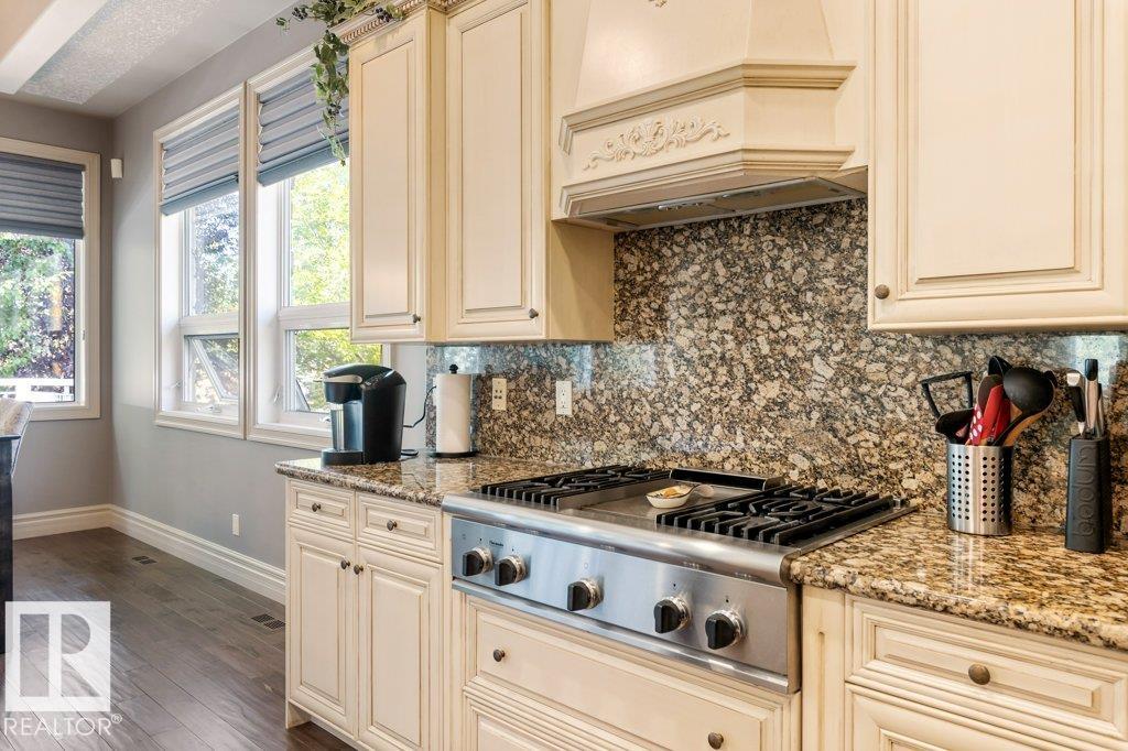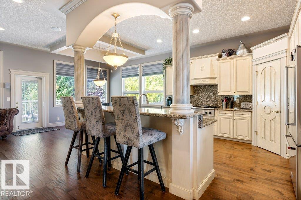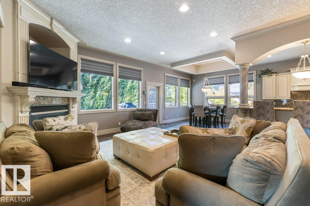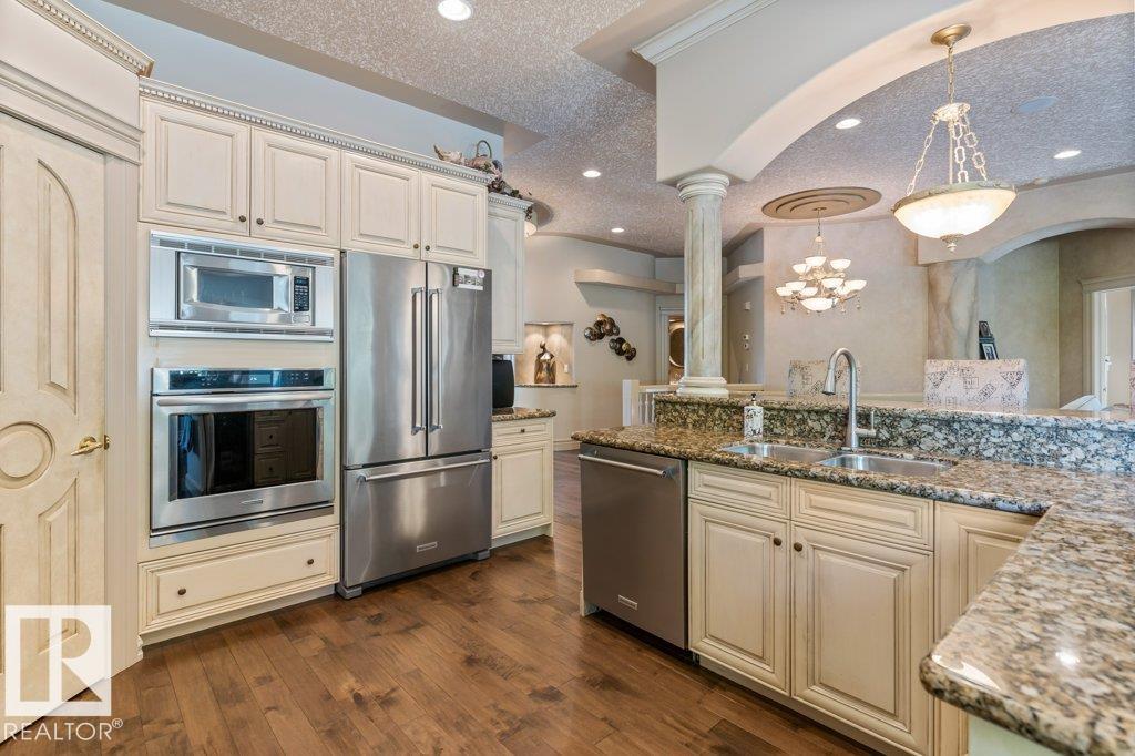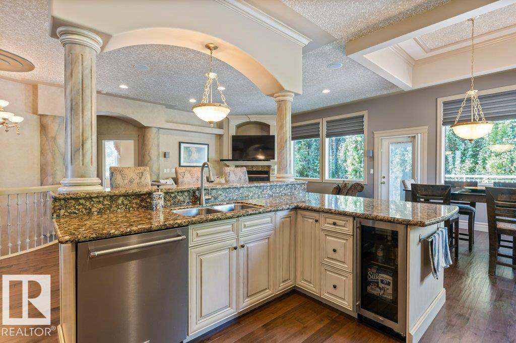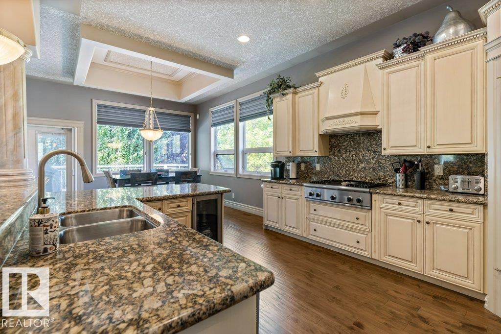 Located KINGSFORD CRESCENT ON A QUIET CUL-DE -SAC this custom built 4-bedroom 2000sqft great room bungalow with OVERSIZED TRIPLE CAR garage features over 3700SQFT OF AWESOME LIVING SPACE. From is stamped concrete driveway to its stunning stone exterior this home is impressive. Upon entering you are greeted by stunning custom millwork, hand scraped hardwood flooring, a main floor office/dining room and an expansive view of the great room with huge family room & feature wall fireplace, STUNNING GRANITE KITCHEN WITH ANTIQUED CABINETS, breakfast bar island, gas stove, built in ovens, pantry, S/S appliances, beverage fridge, loads of counterspace & a sundrenched dining nook. Additional features include: huge master bedroom with 6 pc ensuite, 2 person jacuzzi tub, glass block shower & walk in closet, HUGE RECREATION ROOM with feature wall fireplace, 3 additional large bedrooms, built in entertainment center, wet bar, games area, large laundry room, 9 foot ceilings, private patio all steps from RIVER LOT 56.