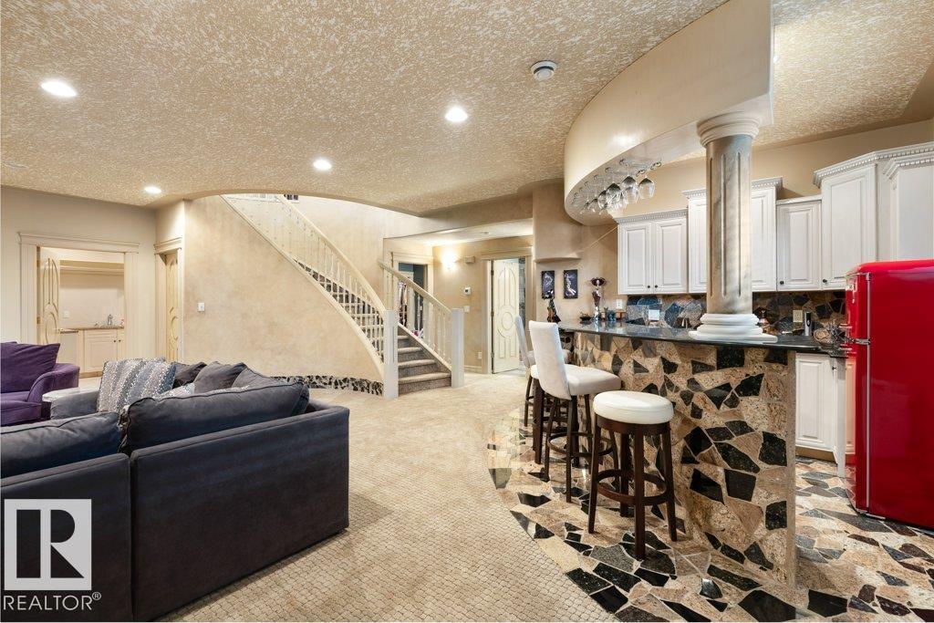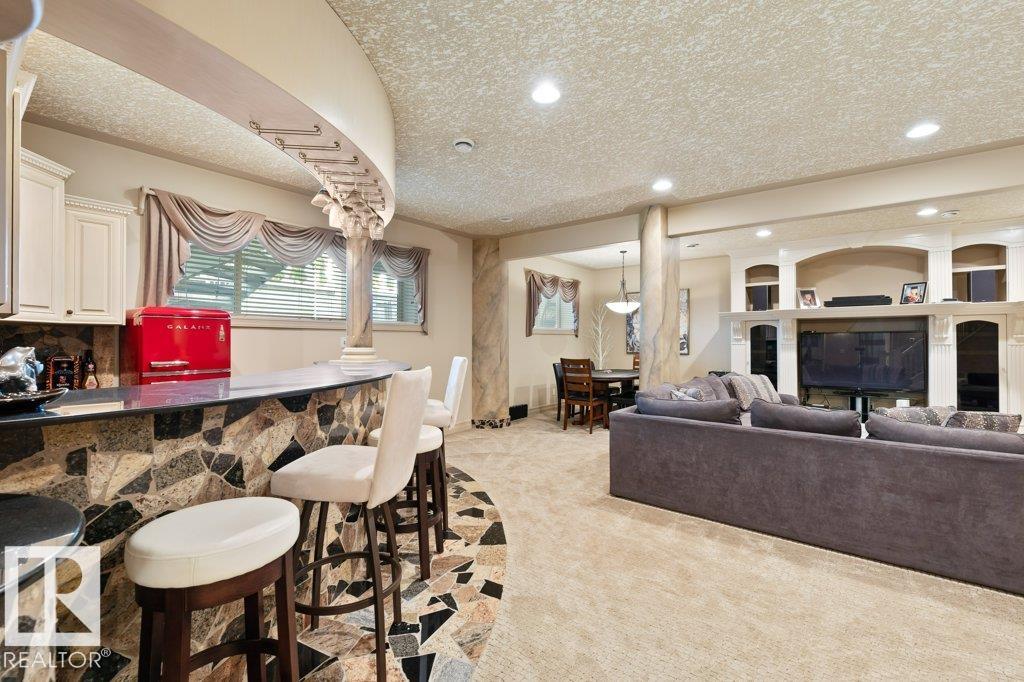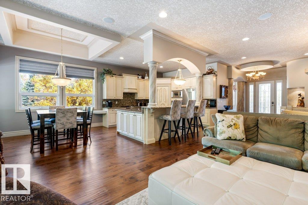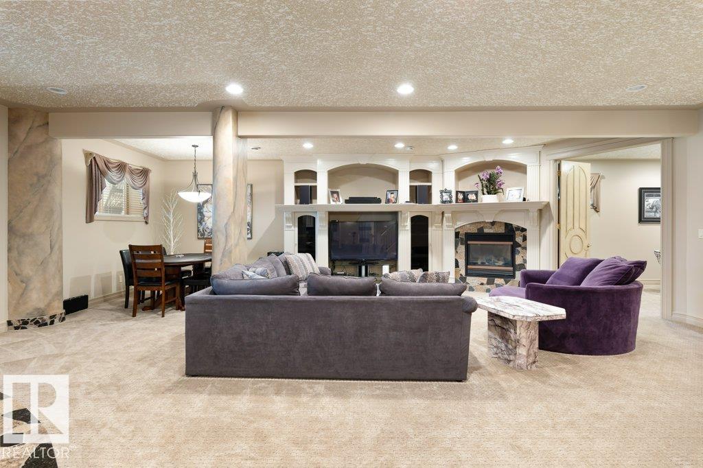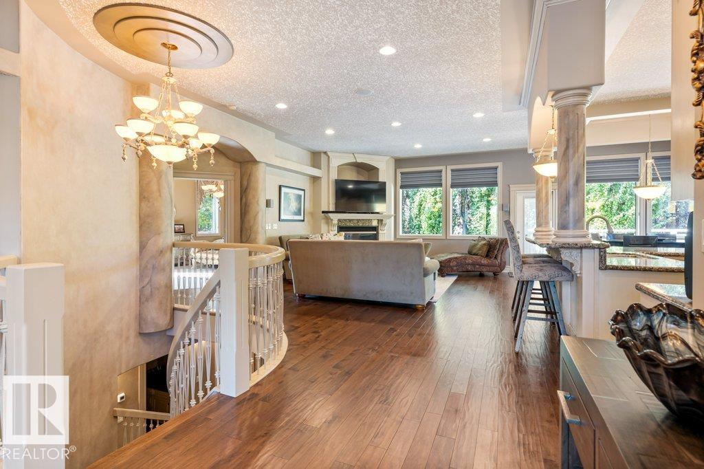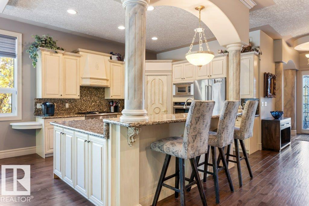 Located KINGSFORD CRESCENT ON A QUIET CUL-DE -SAC this custom built 4-bedroom 2000sqft great room bungalow with OVERSIZED TRIPLE CAR garage features over 3700SQFT OF AWESOME LIVING SPACE. From is stamped concrete driveway to its stunning stone exterior this home is impressive. Upon entering you are greeted by stunning custom millwork, hand scraped hardwood flooring, a main floor office/dining room and an expansive view of the great room with huge family room & feature wall fireplace, STUNNING GRANITE KITCHEN WITH ANTIQUED CABINETS, breakfast bar island, gas stove, built in ovens, pantry, S/S appliances, beverage fridge, loads of counterspace & a sundrenched dining nook. Additional features include: huge master bedroom with 6 pc ensuite, 2 person jacuzzi tub, glass block shower & walk in closet, HUGE RECREATION ROOM with feature wall fireplace, 3 additional large bedrooms, built in entertainment center, wet bar, games area, large laundry room, 9 foot ceilings, private patio all steps from RIVER LOT 56.