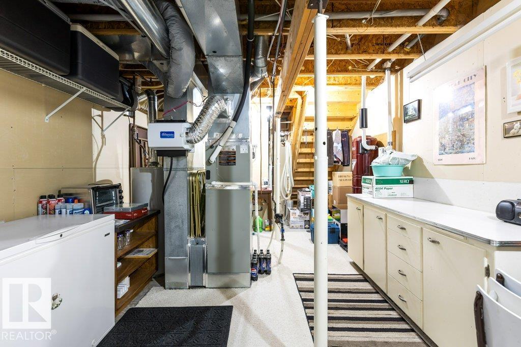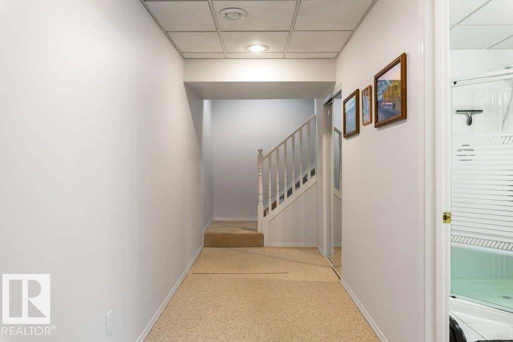 Welcome to this beautifully maintained bungalow in Edgewood Estates, a desirable 45+ condo community. The main floor features 2 bedrooms and 2 full bathrooms, including a primary suite with a walk-in closet and 4-piece ensuite. A spacious living room with hardwood floors, a gas fireplace feature wall, and a formal dining area offers a warm and inviting layout. The bright white kitchen includes a sunny breakfast nook, pantry, and newer appliances, with main floor laundry for added convenience. The finished lower level offers a large recreation area, office space, 3-piece bath, and ample storage. Updates include a high-efficiency furnace, hot water tank, and central A/C (2022), newer windows (2015), and a built-in vacuum system. With no attached neighbor on one side, this end unit enjoys extra windows for abundant natural light and a comfortable deck area to relax outdoors.