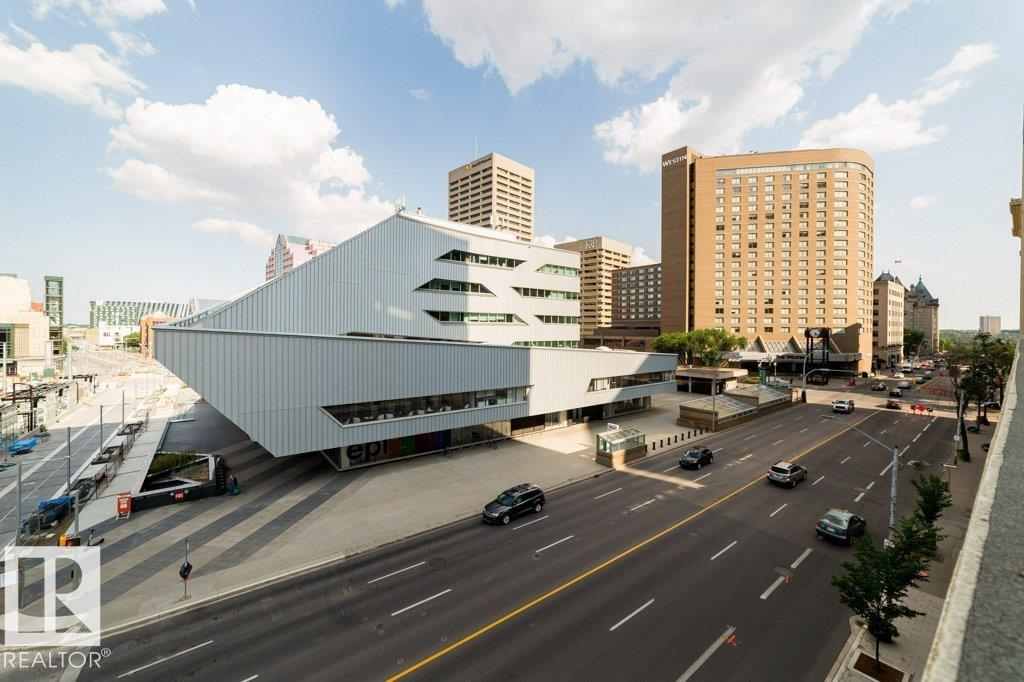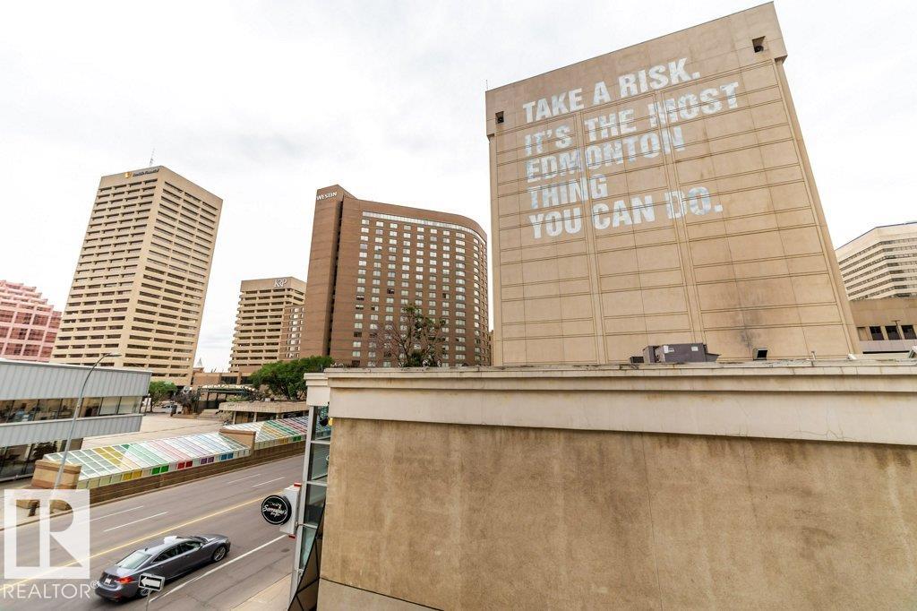 OUTSTANDING LOCATION! This Churchill Exchange condo is located in the heart of Edmonton, steps from Ice District, The Winspear, Art Gallery, 104th Street Farmer’s Market & Churchill Square. Almost 1100 sq ft of living space including the spacious balcony. This one bedroom plus loft condo is in a gorgeous historical, art deco building. Enjoy 16' open beam ceiling and exposed brick. Open stairway to the loft level with a 4 pce ensuite. The main floor features a bright kitchen with granite countertops and stainless steel appliances, an open living room with gas fireplace and large second bedroom. Massive windows make this a beautiful bright condo. There’s a huge balcony off the living room and a shared roof top deck with amazing views of the city. Underground, secured parking is heated! The ultimate Downtown location in a quiet concrete building!