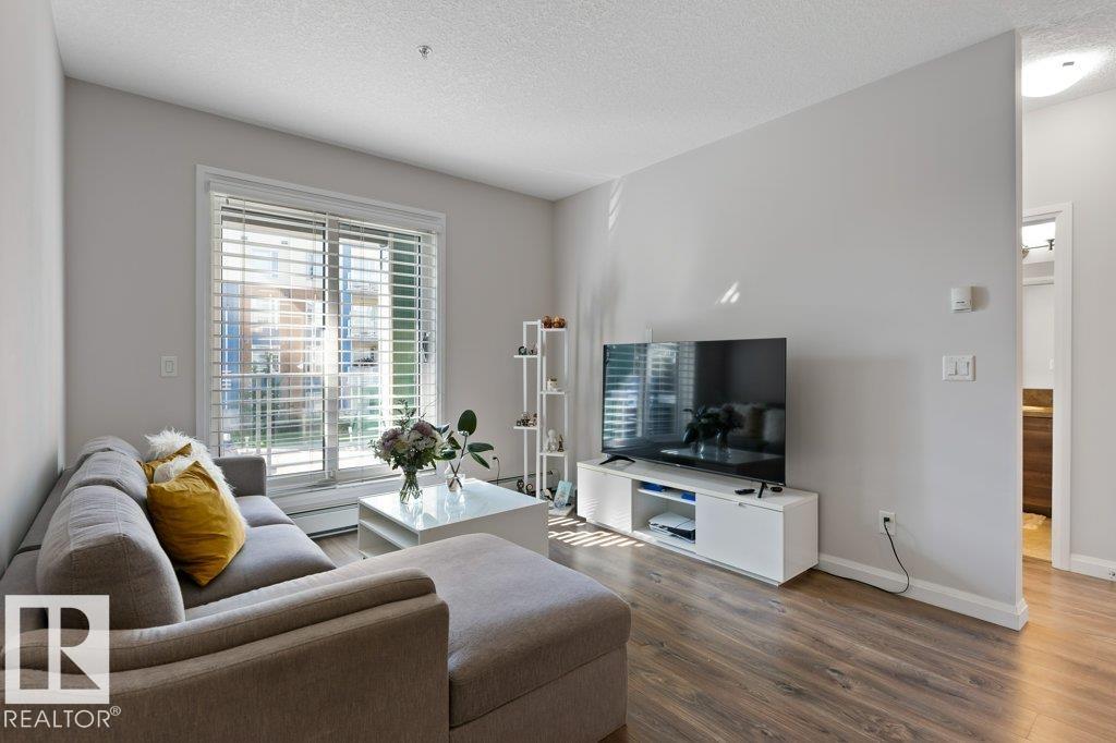 Modern 2-Bedroom, 2-Bathroom Condo in The Ion at Ambleside Discover contemporary living in this beautifully designed condo, featuring one of the most desirable kitchen layouts in the building. The upgraded kitchen boasts sleek cabinetry, stainless steel appliances, quartz countertops, and an oversized peninsula with seating for up to six—perfect for casual dining or entertaining. The open-concept floor plan seamlessly connects the kitchen, dining, and living areas, creating a bright and inviting space. The primary bedroom offers a walk-through closet and a private 4-piece ensuite for your comfort. A spacious second bedroom sits adjacent to another full 4-piece bath, making it an ideal guest room or home office. This unit includes two titled parking stalls—one heated underground and one surface stall for added convenience. The Ion’s amenities include a fully equipped fitness center, a party/media room, and outdoor spaces featuring a gazebo, BBQ area, and scenic walking trails around the lake.