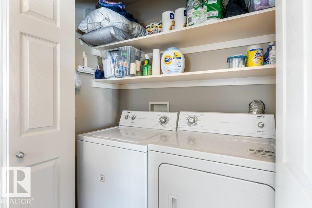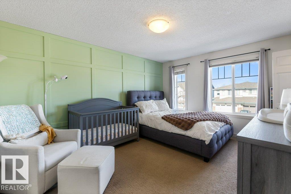 Bright, sunny & beautifully designed 1,529 sq. ft. two-storey half duplex located in the desirable Trumpeter area. This open-concept home features a spacious kitchen with new quartz countertops & backsplash, a large island & a convenient walk-through pantry. Open to the kitchen is a cozy electric fireplace in the great room. The unique dual primary suite layout offers two generous bedrooms, each with walk-in closets featuring custom built-ins & their own 4-pce ensuites. Upper-floor laundry & a versatile flex room complete the second level. The unfinished basement provides excellent future development potential. Step outside to a fantastic fully fenced backyard with a huge deck & fire pit area, perfect for relaxing or entertaining. Air conditioning & a double attached garage complete the comfort of this great home. Ideally located close to beautiful walking trails, Glendale Golf & Country Club, Lois Hole Provincial Park & with easy access to Anthony Henday, Yellowhead Trail, and the City of St. Albert.