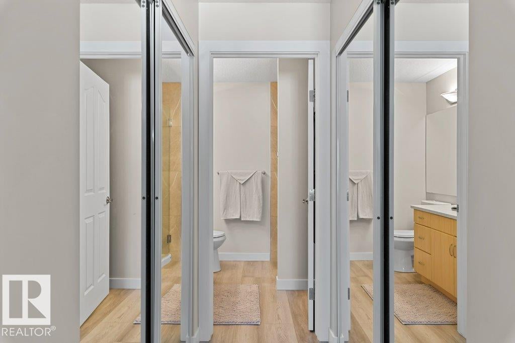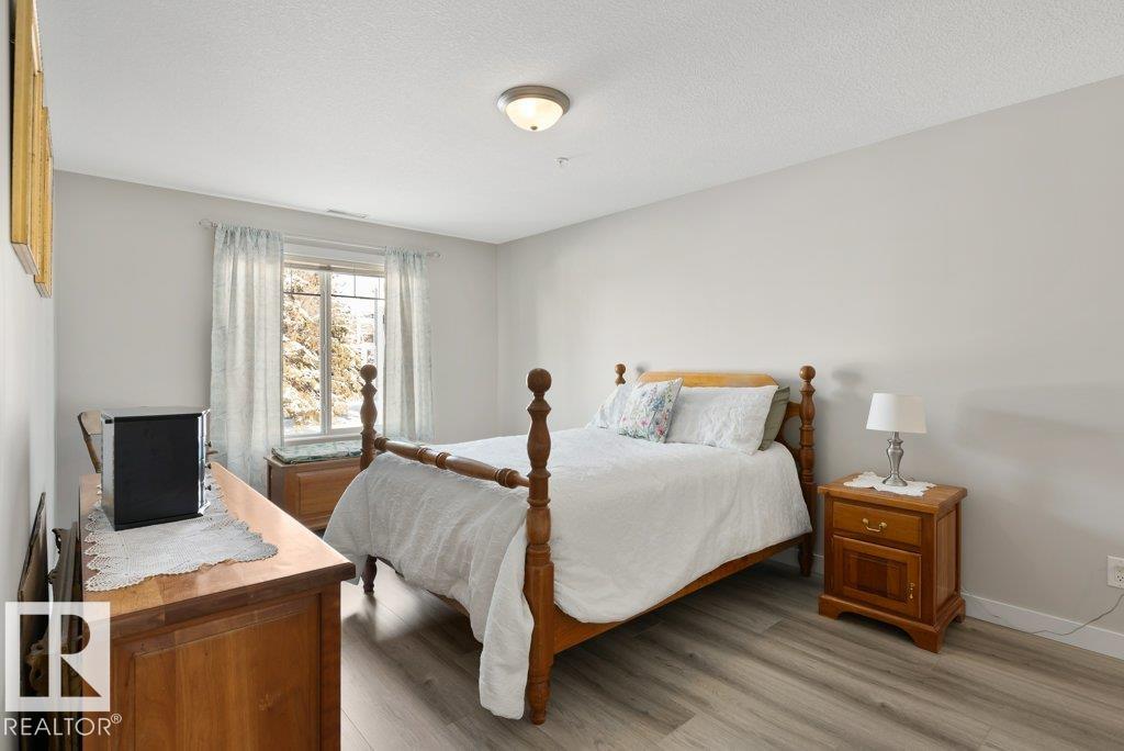 Welcome Home to this beautifully RENOVATED & UPDATED 2 bedrm, 2 bathrm condo in the desirable neighbourhood of Mission. Open concept layout with new vinyl plank, fresh paint & new central AIR CONDITIONING! The kitchen features newer appliances, quartz counters, island, cabinet pantry & stylish backsplash. Spacious kitchen layout perfect for prep & entertaining. The living room features gas fireplace & sliding doors to the balcony. The large primary bedrm can easily fit a king bed & includes a walk-thru double closet to an IMPRESSIVE 3 pc ensuite with gorgeous glass & tile shower, new toilet & quartz counters. The 2nd bedrm (currently used as craft rm) is spacious for guests! Another modernized 4 pc bath, convenient in-suite laundry & generous storage complete unit. The property includes TITLED U/G stall & storage locker. Building amenities: social rooms, gym, library, guest suite & more! Condo fee includes heat & water. Location is ideal with easy access to parks, trails, shopping, restaurants & more!