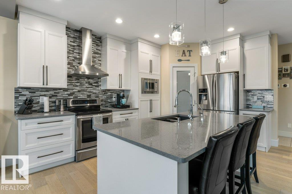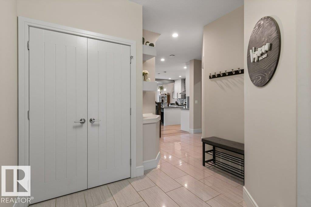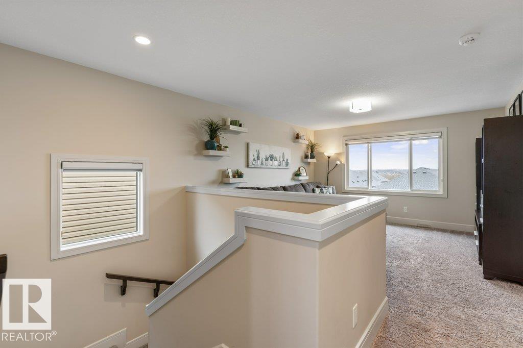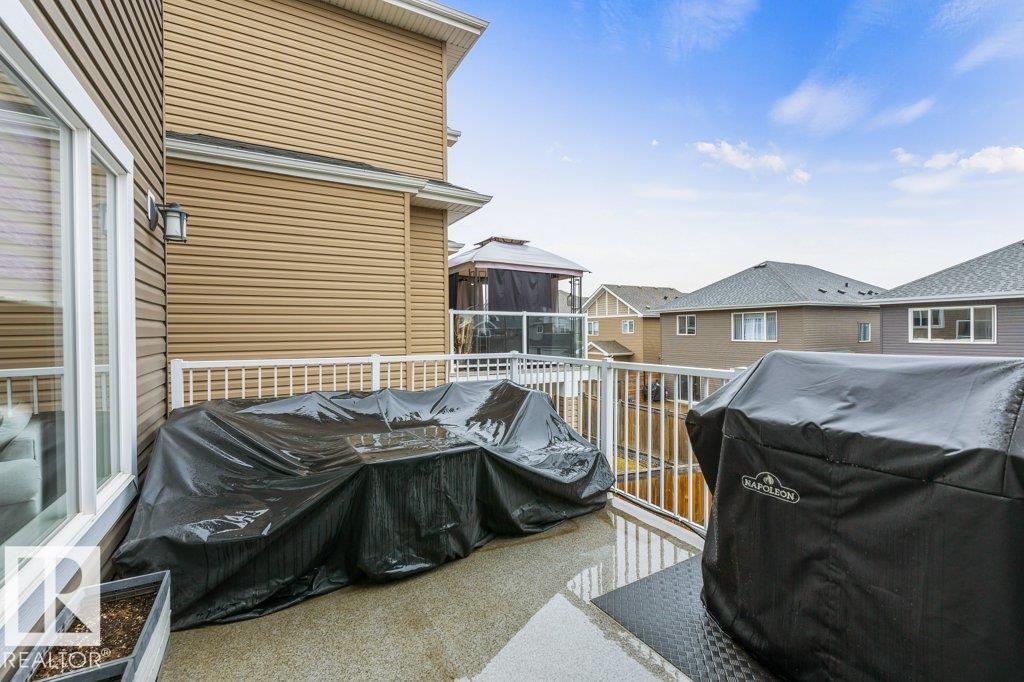 Exceptional 2 storey family home, highlighted by a RARE WALKOUT BASEMENT with a separate entrance, offering incredible flexibility or future suite potential. Step into a bright open-concept main floor featuring 9’ ceilings, a cozy gas fireplace, and beautiful finishes throughout. The fully upgraded kitchen shines with quartz countertops, full-height cabinetry, stainless steel appliances, and a spacious walk-through pantry. Enjoy the convenience of main floor laundry, a functional mudroom with built-in storage, and central air conditioning for year-round comfort. Upstairs offers a sun-filled bonus room, full bath, and three bedrooms, including a generous primary suite with walk-in closet and ensuite featuring double sinks and a large glass shower. The fully landscaped, fenced yard is perfect for families, kids, and pets. Move-in ready, this home is steps from scenic trails, green space, Big Lake, and Lois Hole Provincial Park, in one of Northwest Edmonton’s most desirable family communities.