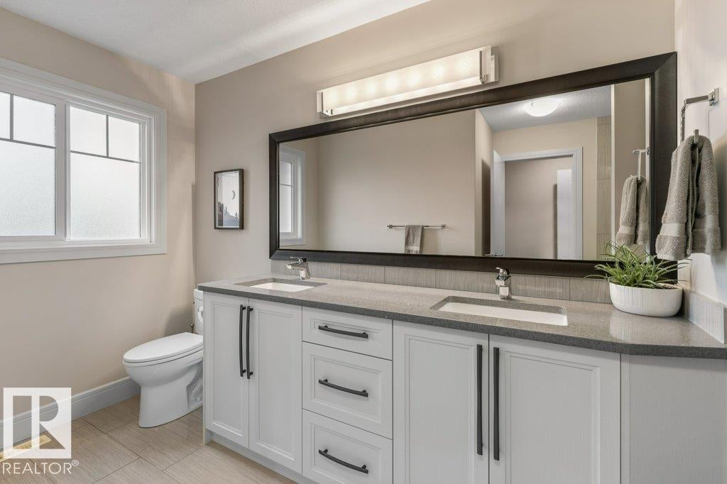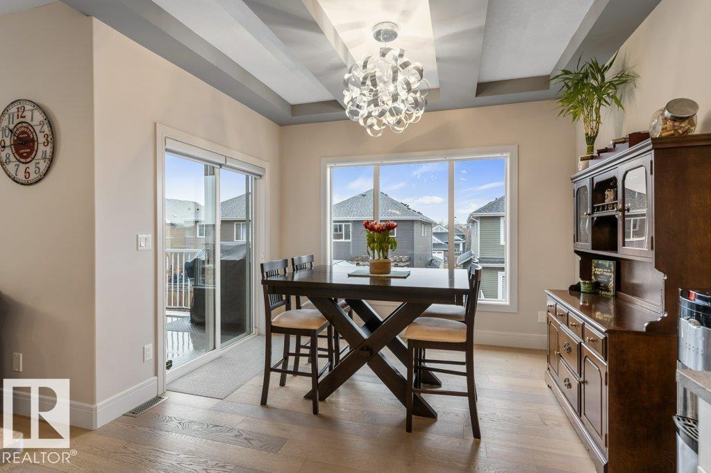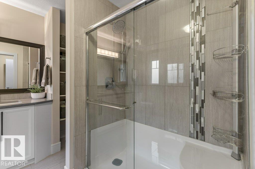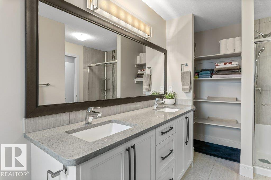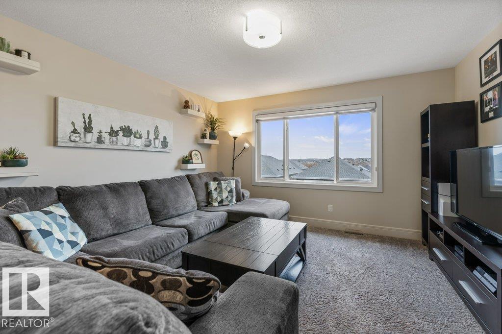 Exceptional 2 storey family home, highlighted by a RARE WALKOUT BASEMENT with a separate entrance, offering incredible flexibility or future suite potential. Step into a bright open-concept main floor featuring 9’ ceilings, a cozy gas fireplace, and beautiful finishes throughout. The fully upgraded kitchen shines with quartz countertops, full-height cabinetry, stainless steel appliances, and a spacious walk-through pantry. Enjoy the convenience of main floor laundry, a functional mudroom with built-in storage, and central air conditioning for year-round comfort. Upstairs offers a sun-filled bonus room, full bath, and three bedrooms, including a generous primary suite with walk-in closet and ensuite featuring double sinks and a large glass shower. The fully landscaped, fenced yard is perfect for families, kids, and pets. Move-in ready, this home is steps from scenic trails, green space, Big Lake, and Lois Hole Provincial Park, in one of Northwest Edmonton’s most desirable family communities.