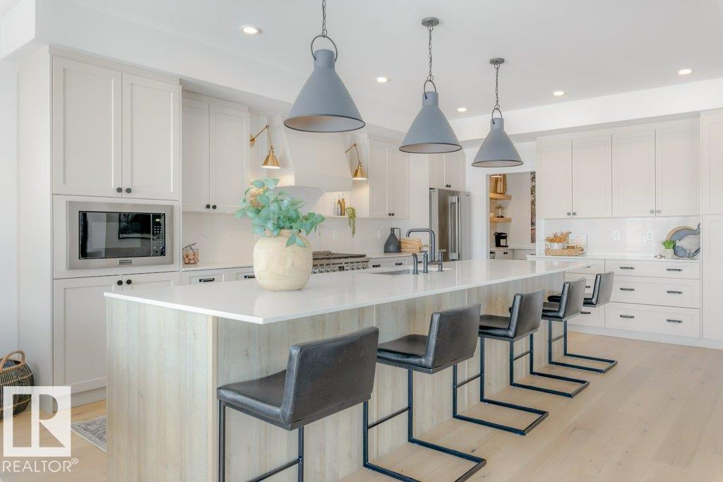Stunning custom-built estate home in the Estates of Riverside offering 2,633 sq ft of beautifully finished living space in a quiet, desirable location. This home is truly move-in ready with completed landscaping, fencing, window coverings and Astoria exterior lighting already in place, delivering exceptional value. Featuring 9' ceilings, engineered hardwood floors and a bright great room with a striking stone gas fireplace. The chef’s kitchen offers a 13 ft island, quartz backsplash, 6 burner gas stove, custom shiplap feature wall and a fully equipped butler’s pantry. A statement wine room with fluted glass door adds character. Upstairs includes a large bonus room, luxurious primary suite with dual walk-in closets and spa-inspired ensuite, plus two bedrooms with Jack & Jill bath and upper laundry. Enjoy central A/C, hot water on demand and EV rough-in. Fully landscaped and fenced yard with composite deck and added privacy. Close to trails, parks and amenities. Oversized triple garage completes this home!