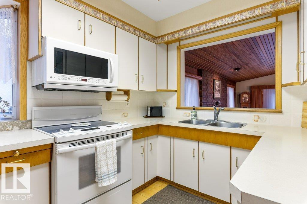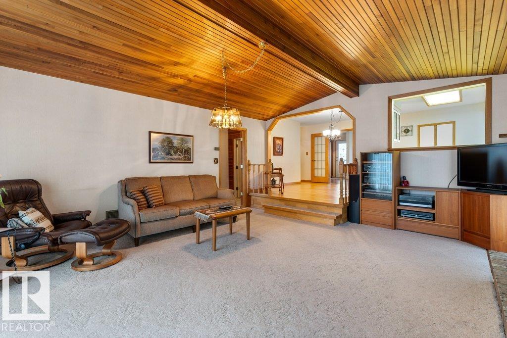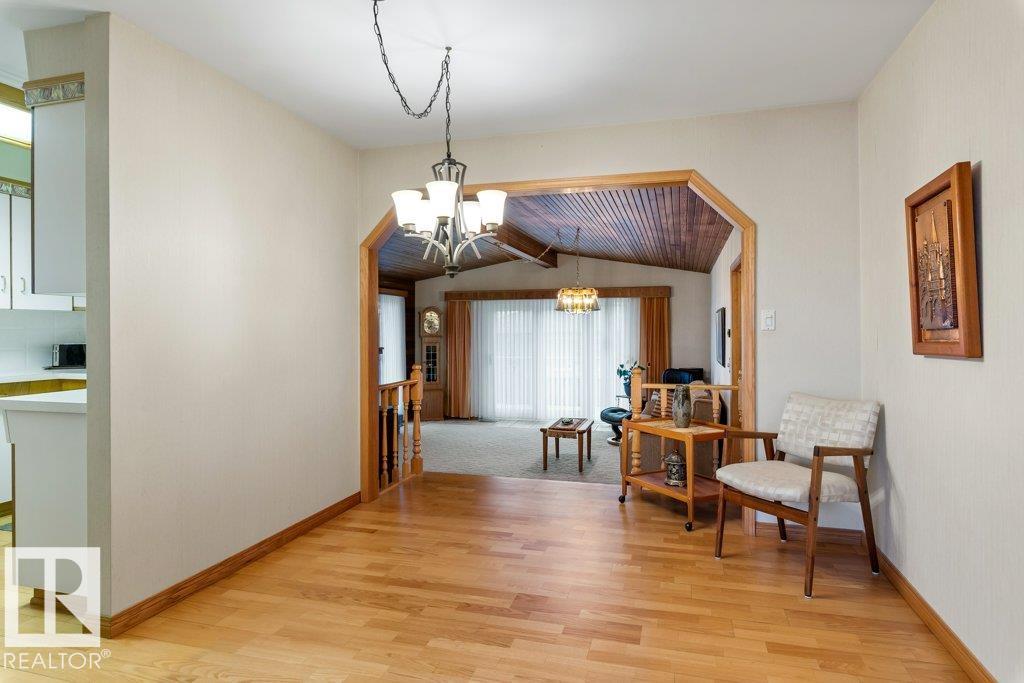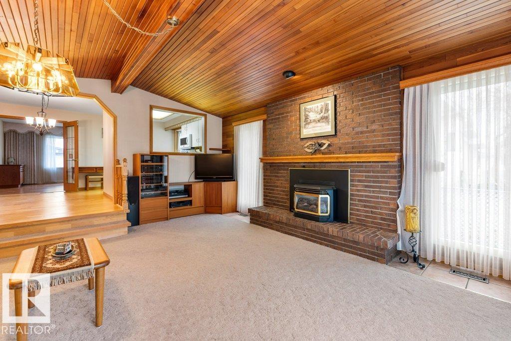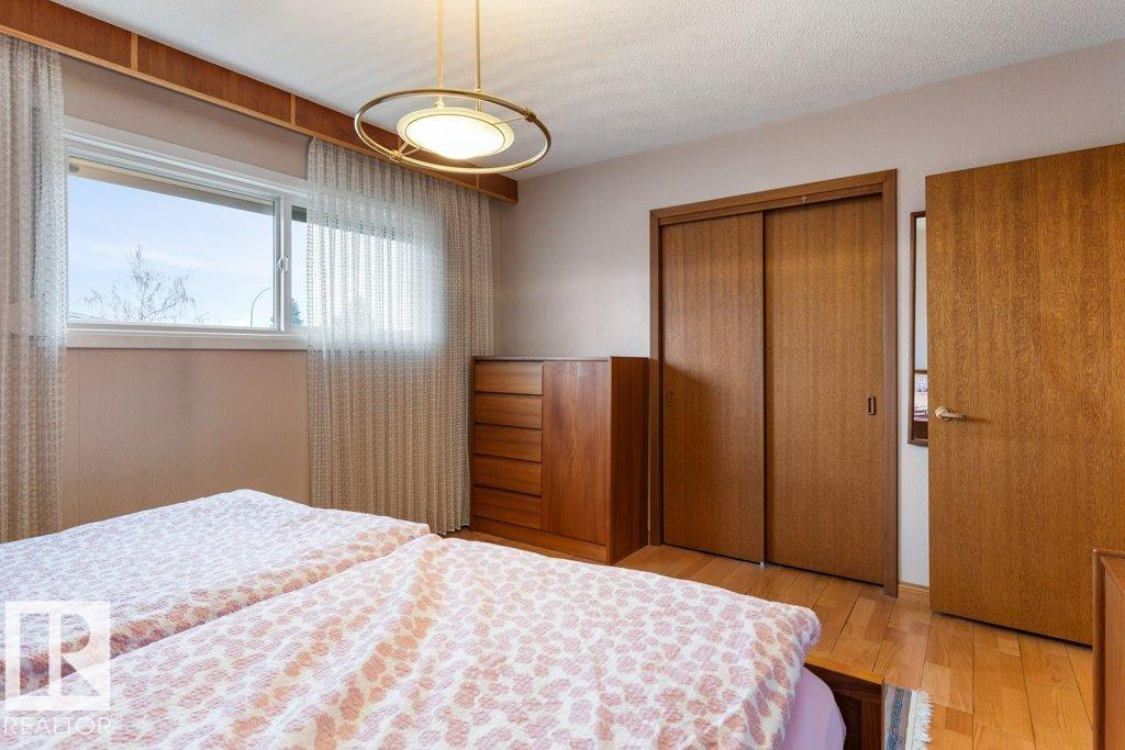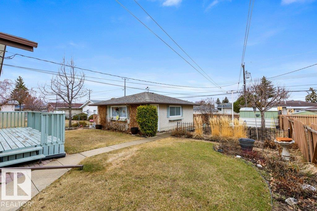 Welcome Home to this lovingly maintained bungalow with mid century modern flair sprinkled throughout! This 1451 sq ft 4 bed, 2 bath property is located on close to parks, schools, transportation, shopping & more! You are welcomed with gleaming hardwoods & loads of natural light. The living rm is bright & open with French doors. Kitchen & dining areas overlook a massive family rm with deck & backyard access. Sunken family room is perfect to hang out, featuring a cozy gas F/P, cedar vaulted ceilings & space to enjoy hosting! Spacious primary bedrm with wooden closet doors & hardwood. The main floor is completed with a 3 piece bath & 2nd bedrm. The functional mudrm has ample space for family organization. The basement features a large rec rm with cedar accents to add to the intimate feel. 2 additional bedrms, storage, laundry rm & 3 pc bath. Outside the massive yard features gardens with many low maintenance shrubs & perennials. O/S double detached garage with back lane access. Just move in & ENJOY!