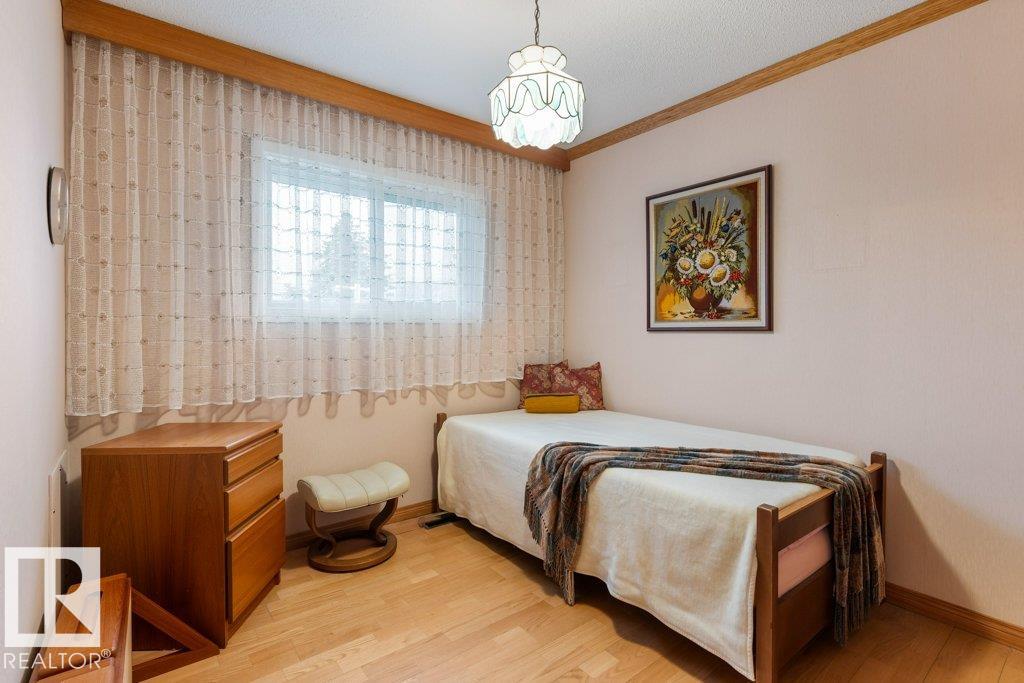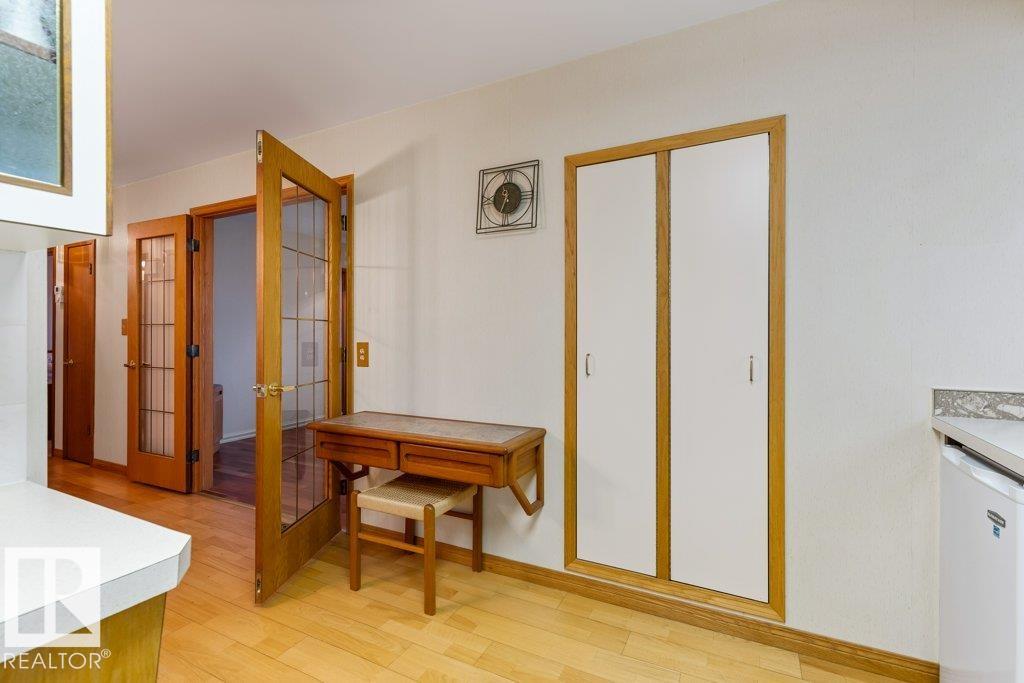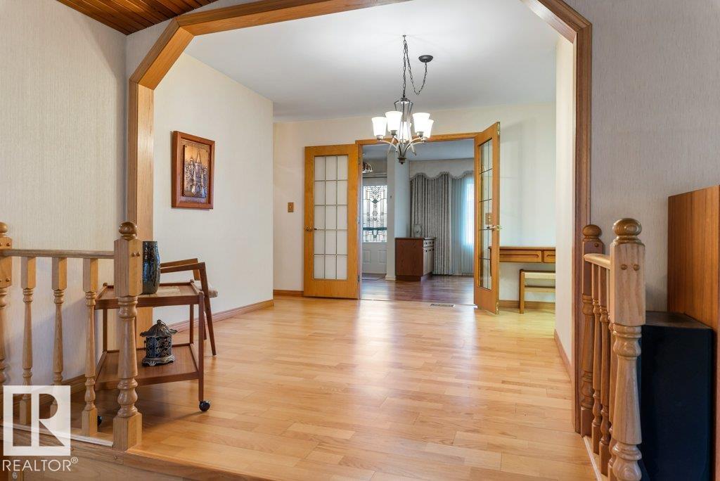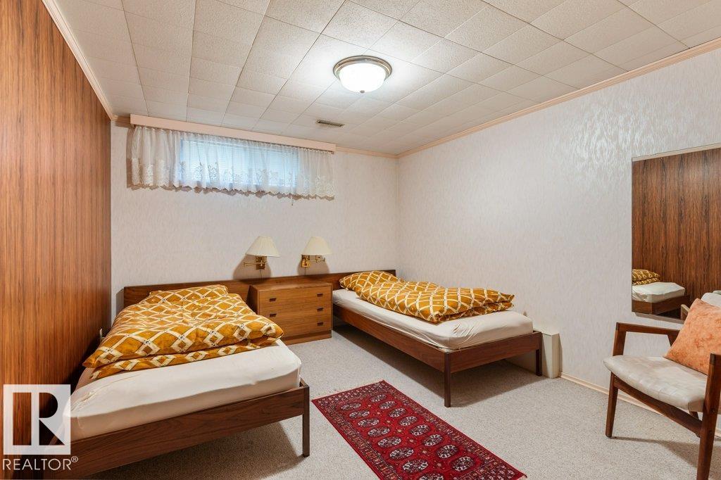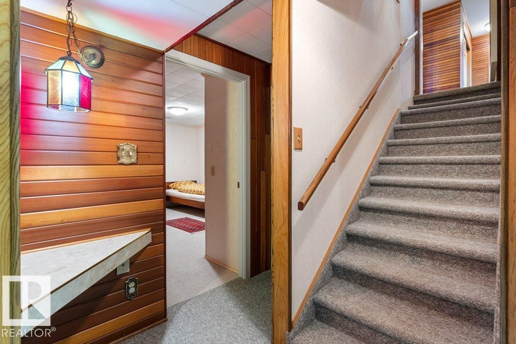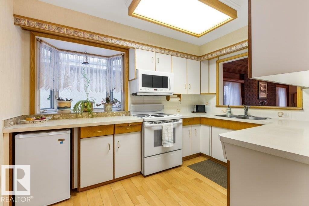 Welcome Home to this lovingly maintained bungalow with mid century modern flair sprinkled throughout! This 1451 sq ft 4 bed, 2 bath property is located on close to parks, schools, transportation, shopping & more! You are welcomed with gleaming hardwoods & loads of natural light. The living rm is bright & open with French doors. Kitchen & dining areas overlook a massive family rm with deck & backyard access. Sunken family room is perfect to hang out, featuring a cozy gas F/P, cedar vaulted ceilings & space to enjoy hosting! Spacious primary bedrm with wooden closet doors & hardwood. The main floor is completed with a 3 piece bath & 2nd bedrm. The functional mudrm has ample space for family organization. The basement features a large rec rm with cedar accents to add to the intimate feel. 2 additional bedrms, storage, laundry rm & 3 pc bath. Outside the massive yard features gardens with many low maintenance shrubs & perennials. O/S double detached garage with back lane access. Just move in & ENJOY!