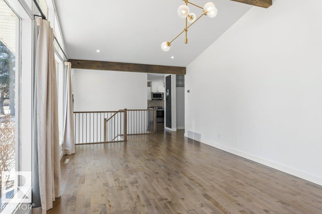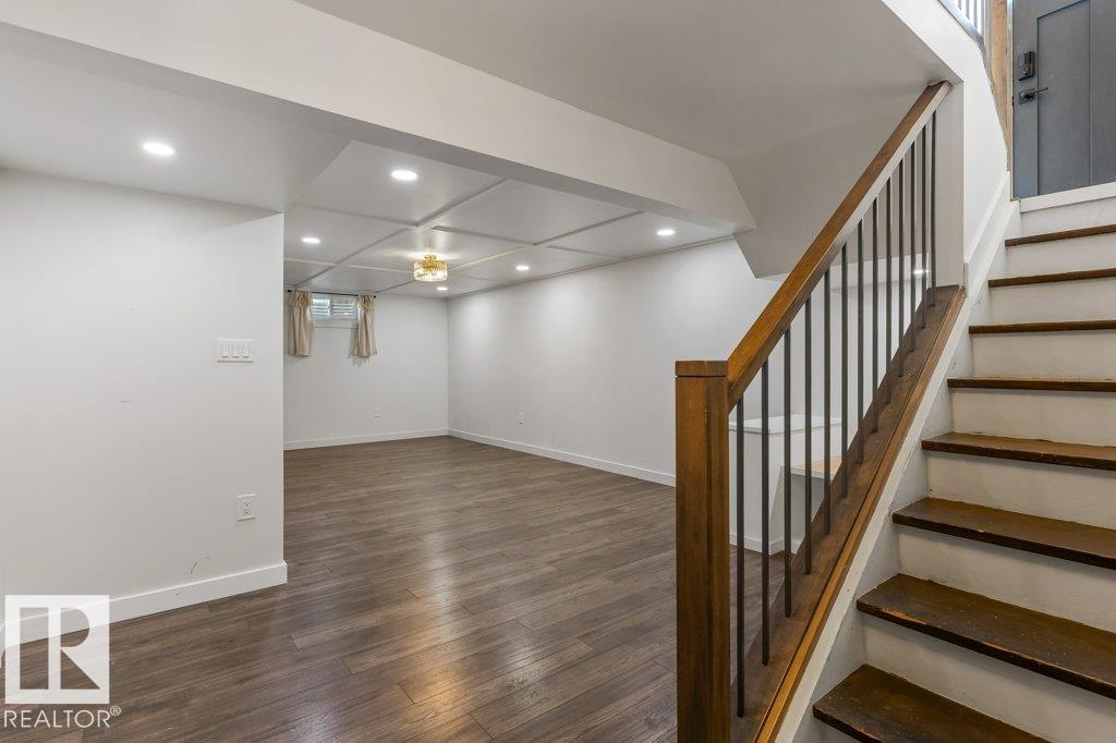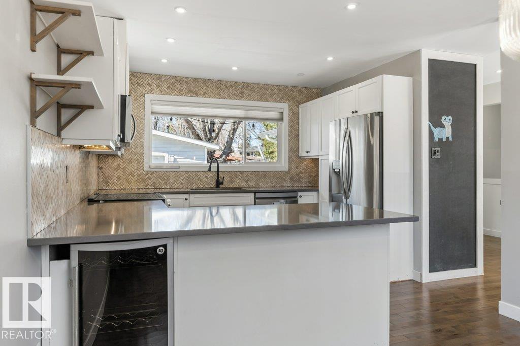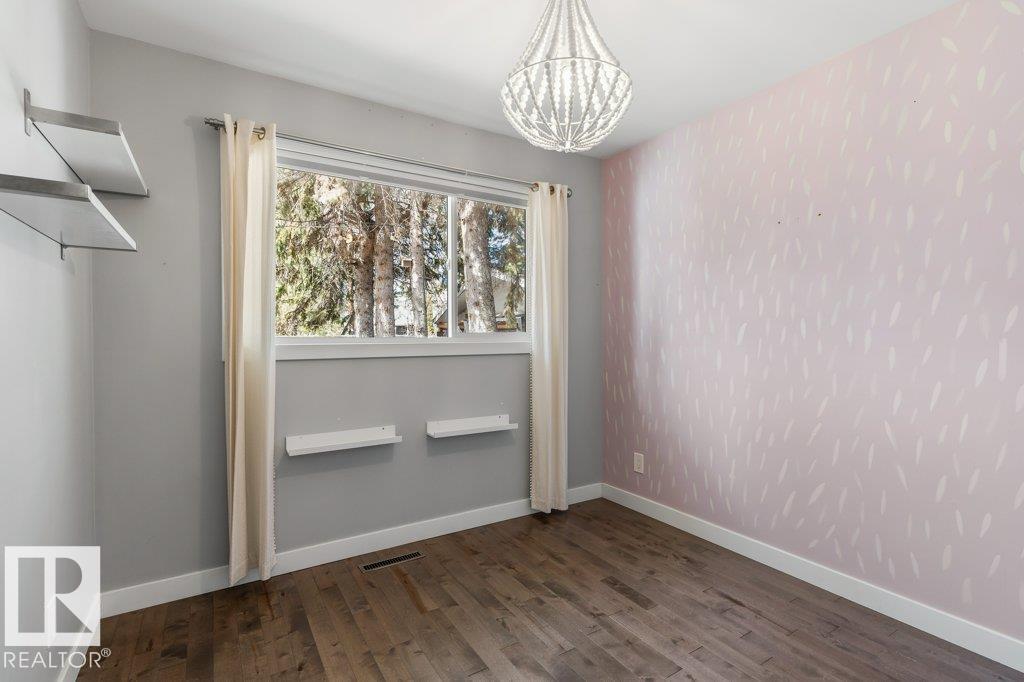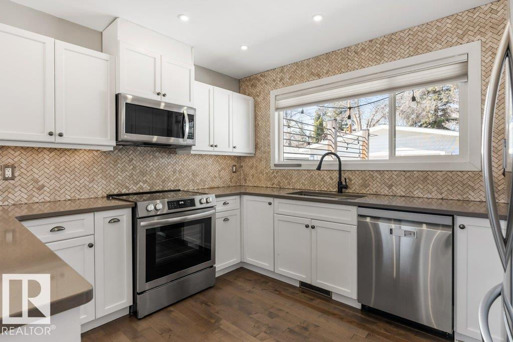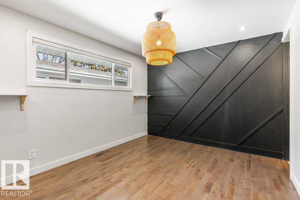 Welcome to this beautifully maintained 1,216 sq ft bungalow in the sought-after Gardens neighborhood of St. Albert. This home offers three spacious bedrooms on the main floor, including a primary suite with its own 3-piece ensuite, plus a full 4-piece main bath. The bright and inviting living room features vaulted ceilings, open beams, and large banks of windows that flood the space with natural light. The updated kitchen boasts quartz countertops and stainless steel appliances, with a separate dining area ideal for family meals and entertaining. Downstairs, the fully finished basement provides a large recreation room, versatile flex space, and ample storage with a dedicated laundry area and additional room for future development. Outside, enjoy a private deck with a built-in privacy screen, perfect for relaxing or hosting guests, along with a double detached garage. Located in a fantastic neighborhood close to downtown, Lions Park, the farmers’ market, schools, and all amenities.