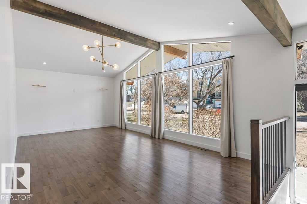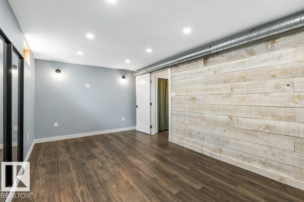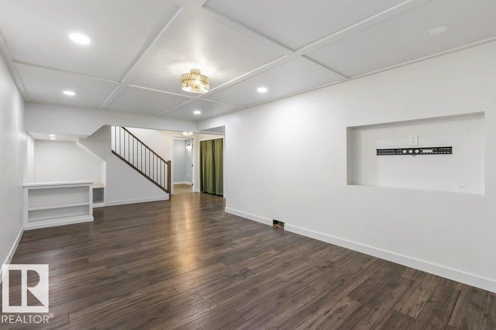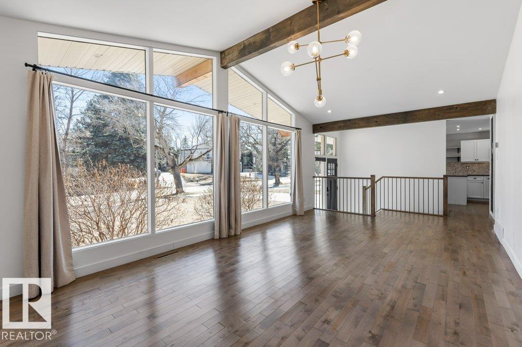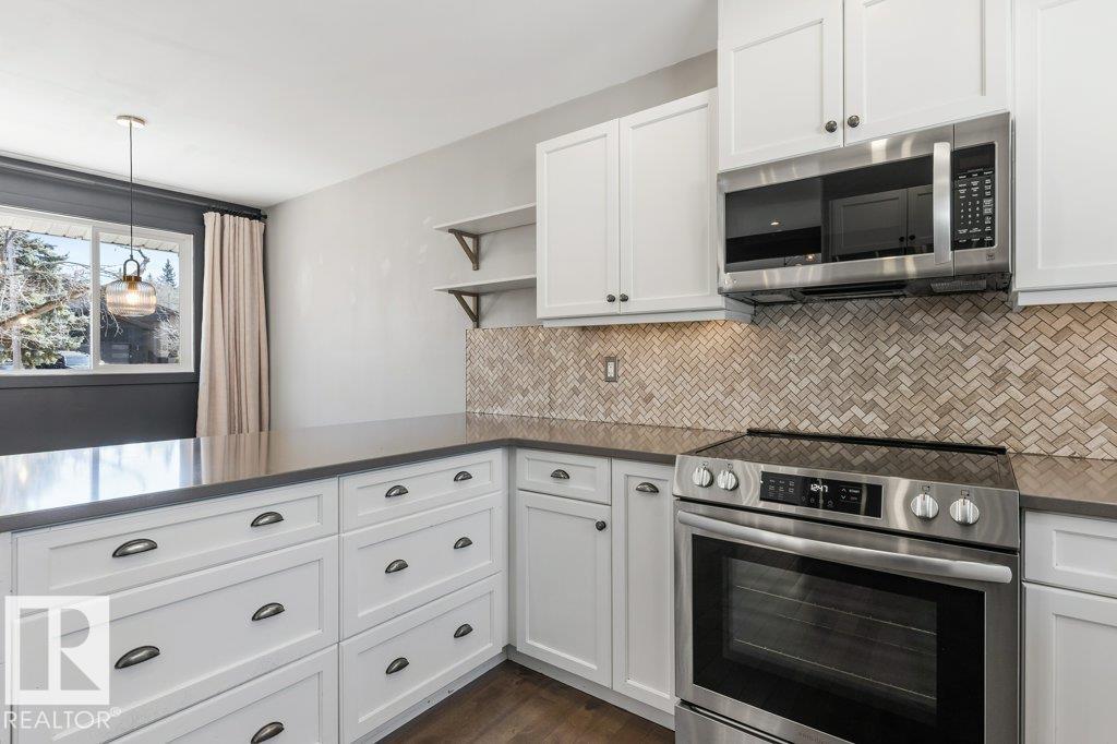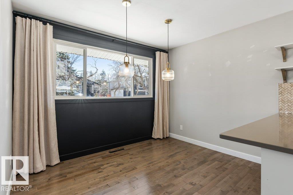 Welcome to this beautifully maintained 1,216 sq ft bungalow in the sought-after Gardens neighborhood of St. Albert. This home offers three spacious bedrooms on the main floor, including a primary suite with its own 3-piece ensuite, plus a full 4-piece main bath. The bright and inviting living room features vaulted ceilings, open beams, and large banks of windows that flood the space with natural light. The updated kitchen boasts quartz countertops and stainless steel appliances, with a separate dining area ideal for family meals and entertaining. Downstairs, the fully finished basement provides a large recreation room, versatile flex space, and ample storage with a dedicated laundry area and additional room for future development. Outside, enjoy a private deck with a built-in privacy screen, perfect for relaxing or hosting guests, along with a double detached garage. Located in a fantastic neighborhood close to downtown, Lions Park, the farmers’ market, schools, and all amenities.